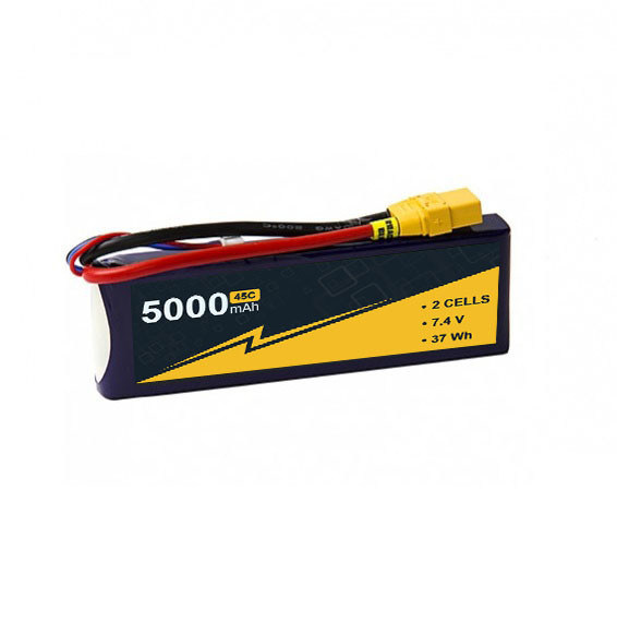 7.4V 45~90C 5000mAh 2S Lipo batteria con w/XT-90 per batteria Airplane RC