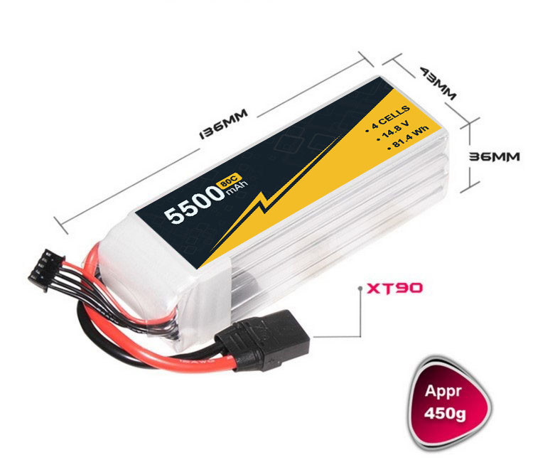 5500mAh 14,8V 4s1P batteria Lipo 80C per FPV batteria Lipo