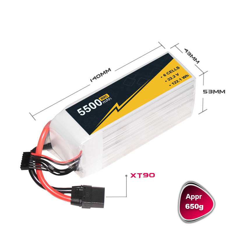 5500mAh 22.2V 6s Batterie Lipo 130C per FPV Batterie Lipo